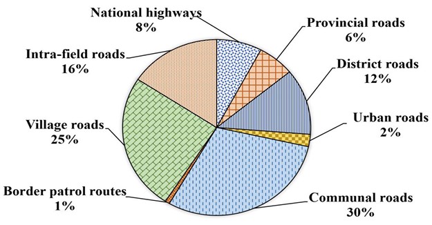 Percentage distribution of road surface types in Dien Bien province [20].