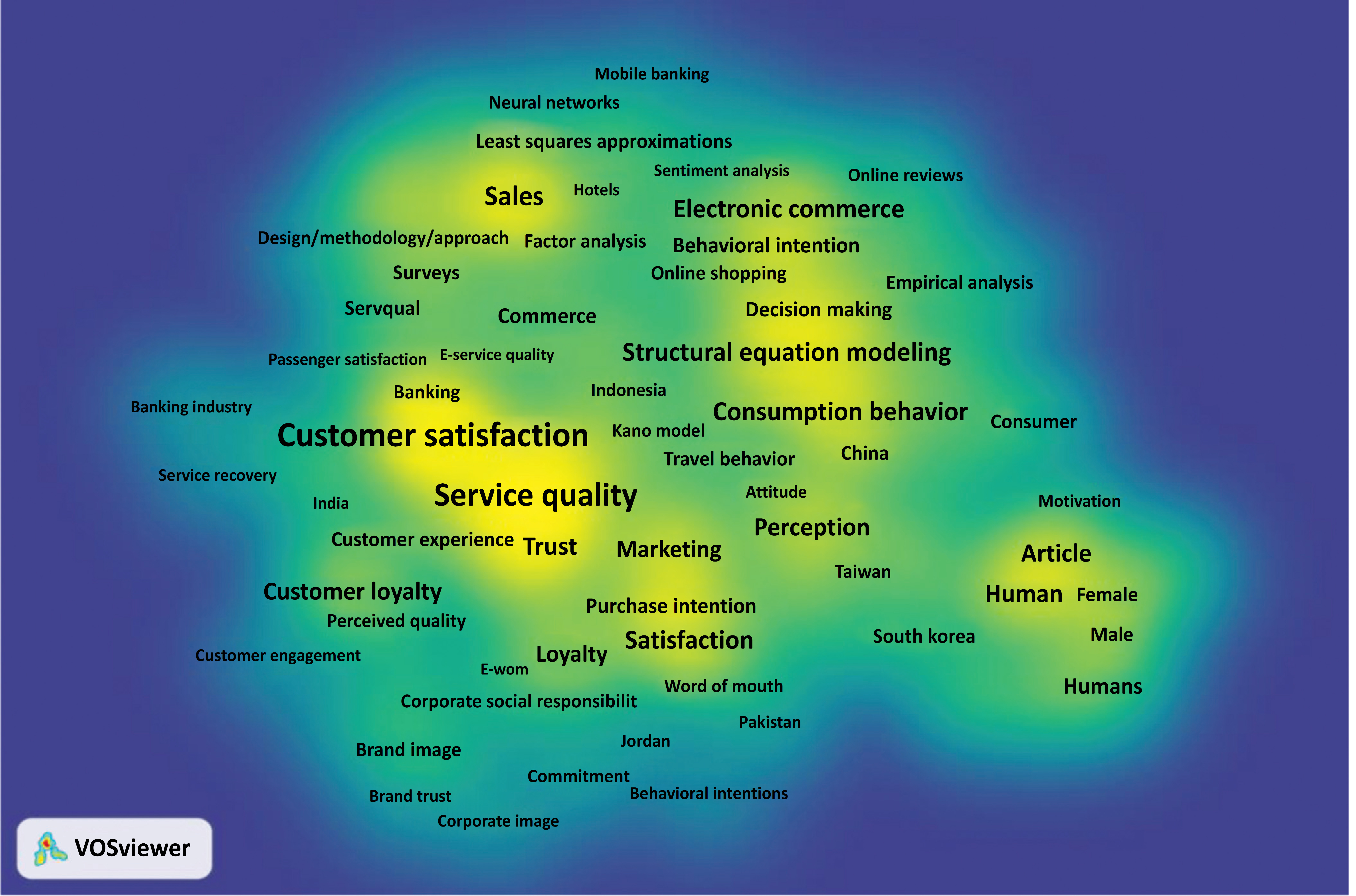 Bibliometric analysis indicated that the trend for researching keywords related to service quality, customer satisfaction, service convenience, and the airline industry is upward sloping throughout the period from 2015 to 2024. As shown in the graph, the period from 2022 to 2024 saw the greatest increase in publications. More recent studies have also investigated the role of technology in service delivery, the impact of culture on service quality perceptions, and the importance of employee-customer interactions in shaping service experiences. This ongoing research has provided valuable insights for businesses seeking to improve service quality and gain a competitive advantage. Besides, as airlines develop, publications on this topic should increase simultaneously (Fig. 3).