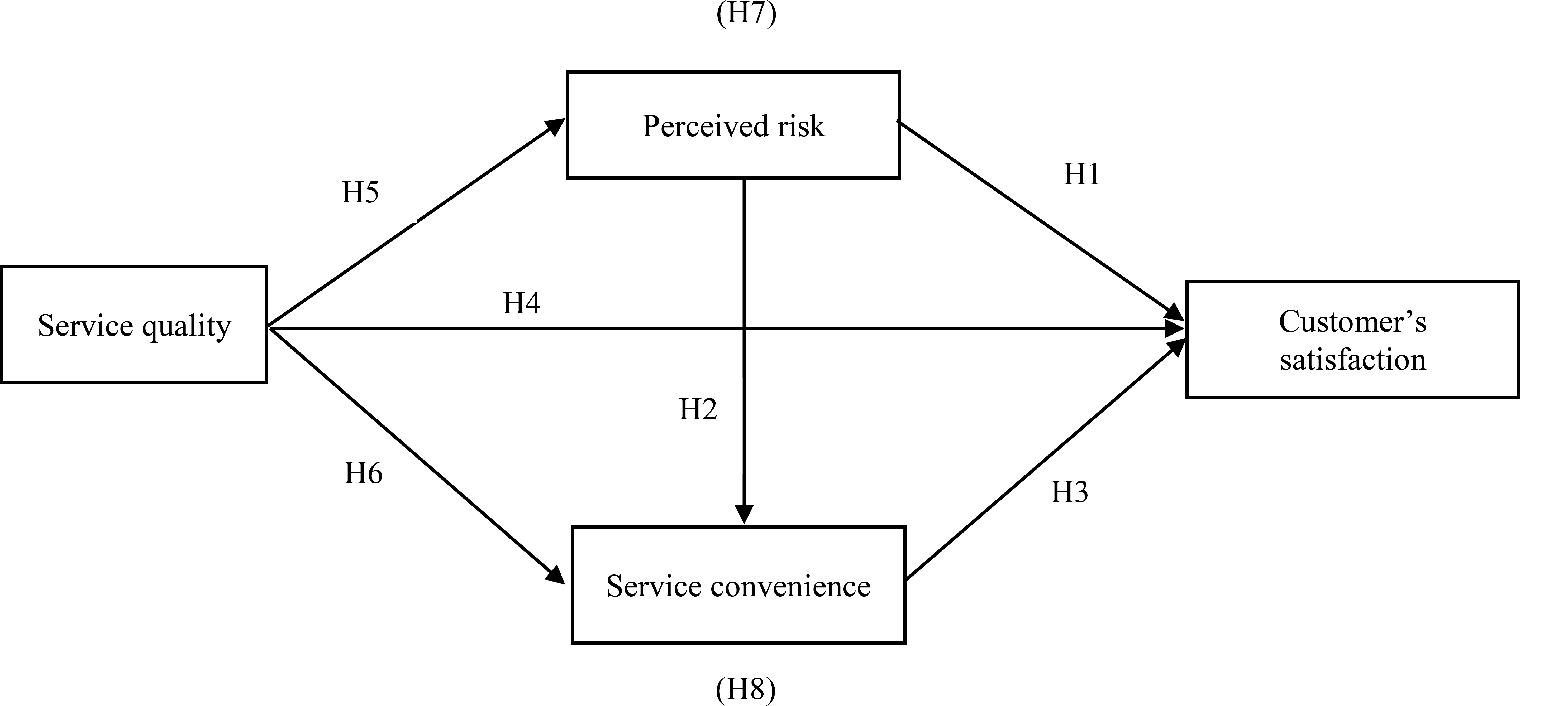 The findings underscore the mediating role of service convenience in the attainment of customer satisfaction derived from service quality. Another key finding is that service quality directly affects customer satisfaction, whereas perceived risk does not substantially affect customer satisfaction.