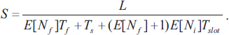 The system throughput S can be calculated as the ratio of the average load information transmitted in a time slot to the average duration of a time slot: