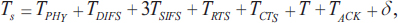 where TDIFS, TSIFS, TRTS, TCTS, TACK and, δ DCF indicate interframe gap time, short interframe gap time, RTS time, CTS time, transmission time of ACK frame and propagation delay. Their values are listed in Table 1. The expression for the expected values of Uf and Ni can be calculated as follows: